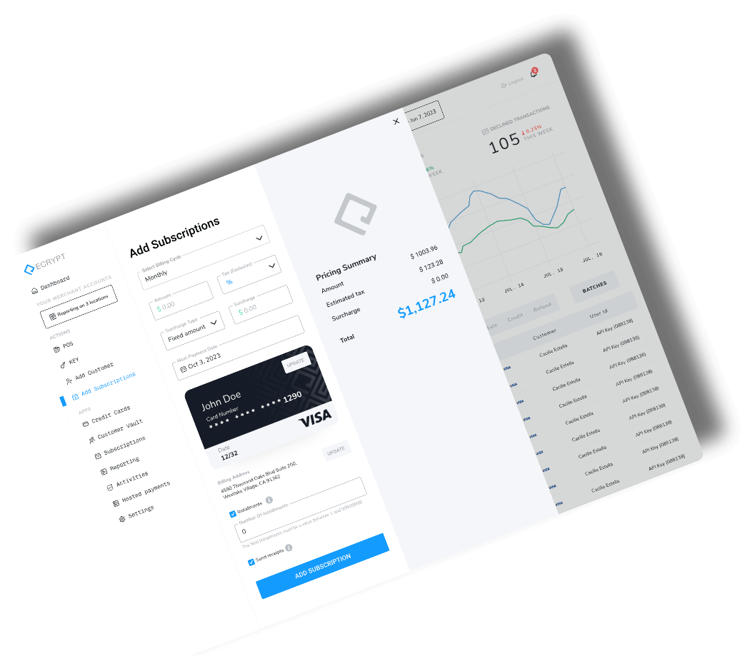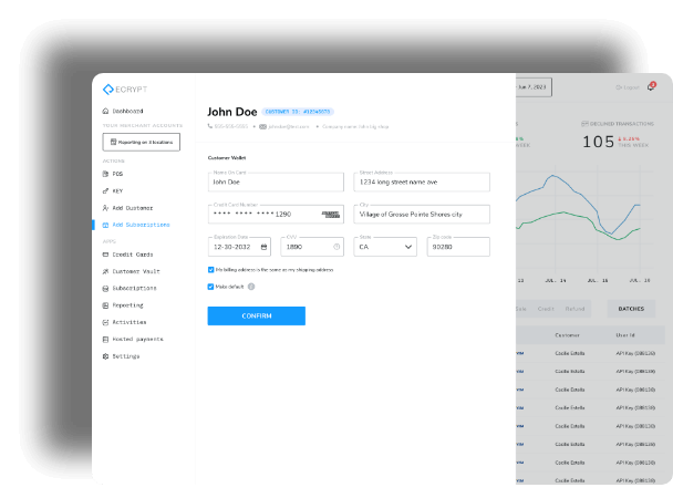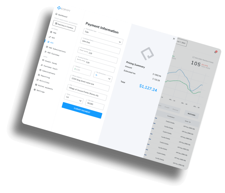 Quickly integrate payments with our simplified API documentation. Leverage ECRYPT's dev support to help you every step of the way.